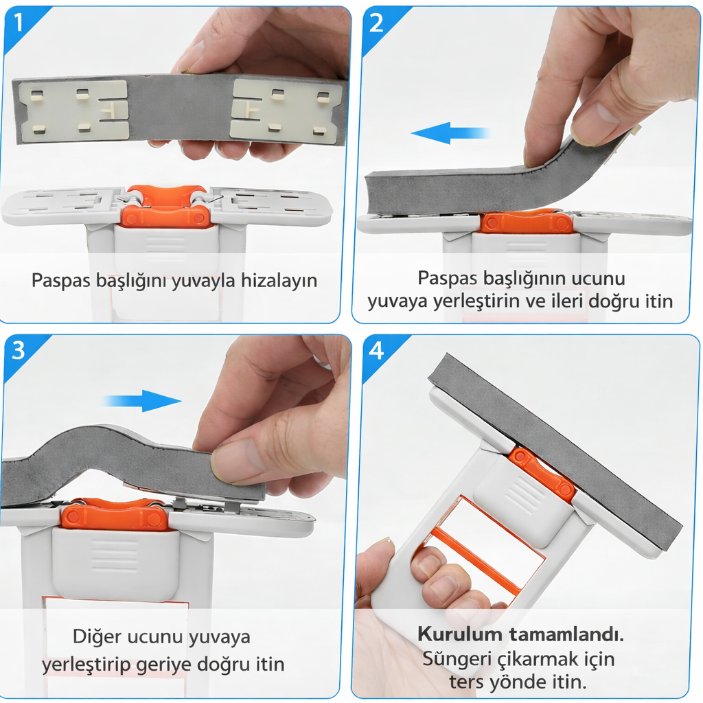 Ürün, yüksek emici pamuk sünger başlığa sahiptir. Sıvıları hızlıca emer ve sıkıldığında suyu kolayca bırakır, iz bırakmaz.